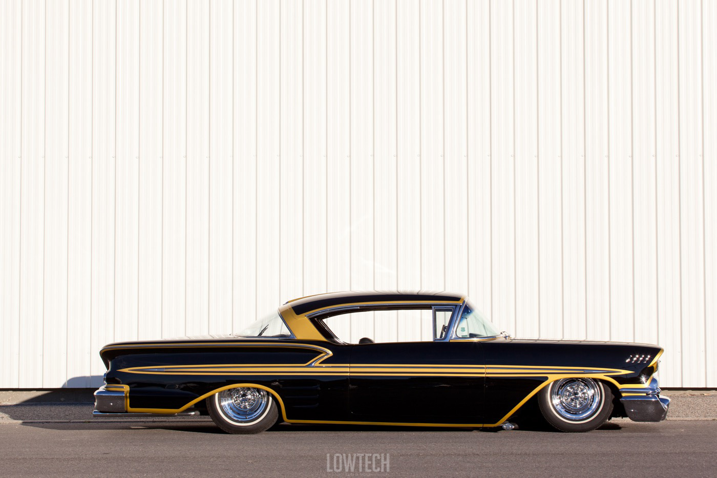Maybe a bit more surprising comes the fact that Momo lives in Switzerland, and already at the age of 17, he had started his customizing career turning a 1961 Impala into a mild kustom. Having no garage at the time, he had to do everything in an underground parking lot, with cheap tools and almost no space. Later on, he was able to build his first custom car from the ground up, a 1965 Impala.